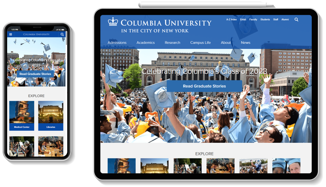 Modern Redesign: The Columbia University website features a modern and visually appealing design that reflects the institution's prestigious reputation enhancing their user’s experiences.