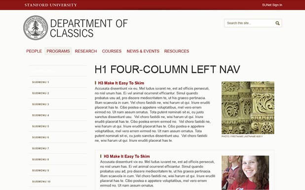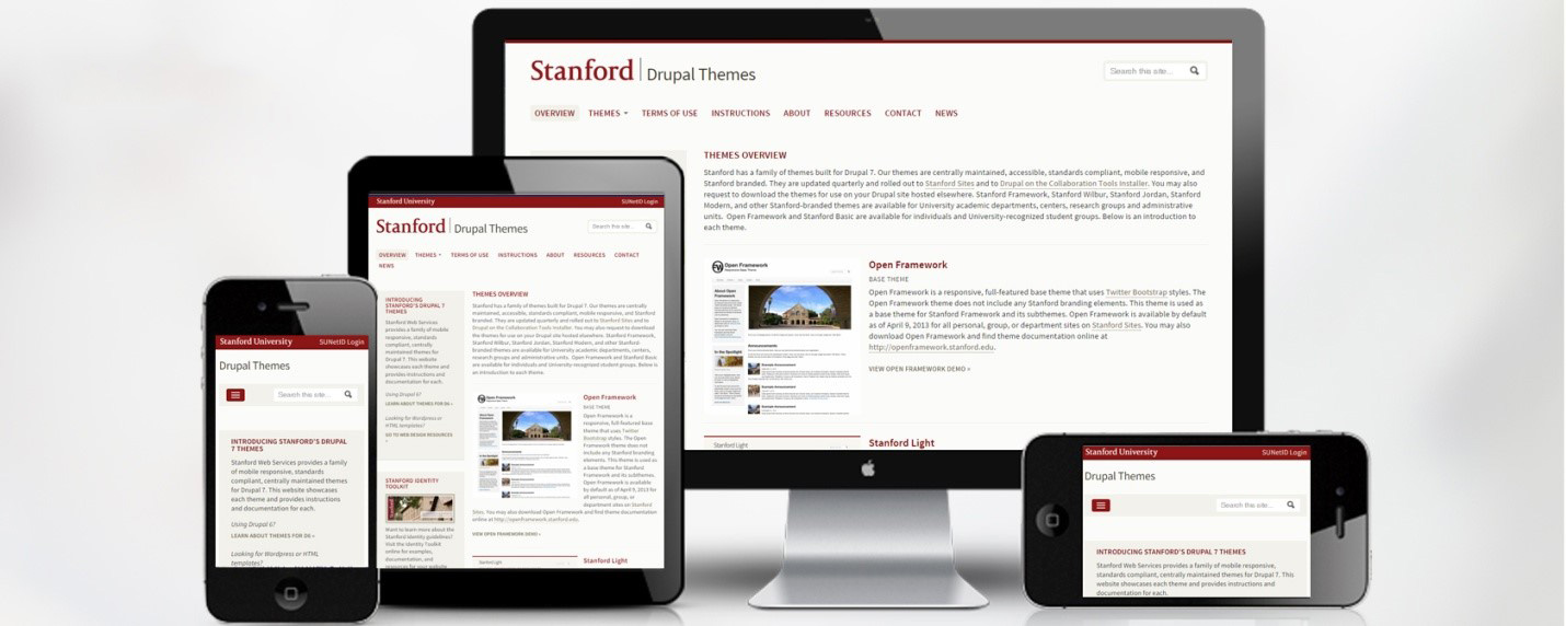 An educational powerhouse as big as Stanford needed to ensure that their web products were easy-to-use and fully functional. They hired us to develop their designs into responsive Drupal themes for use in various Stanford departments. When developing this web template system, it was critical that the templates be flexible to accommodate a wide range of content. However, Stanford didn't have a strategy of how the content would look on mobile devices. Our designer worked closely with their web services team to develop a mobile design strategy that would be flexible enough to fit any type of content. We built several prototypes and tested the usability of different design concepts. We found and solved all usability issues. We meticulously tested to ensure that the templates followed current design trends and patterns, and the latest web standards. We also worked in special mobile features to make certain all site content would translate well on mobile devices. This template is now reused by various departments at Stanford University.