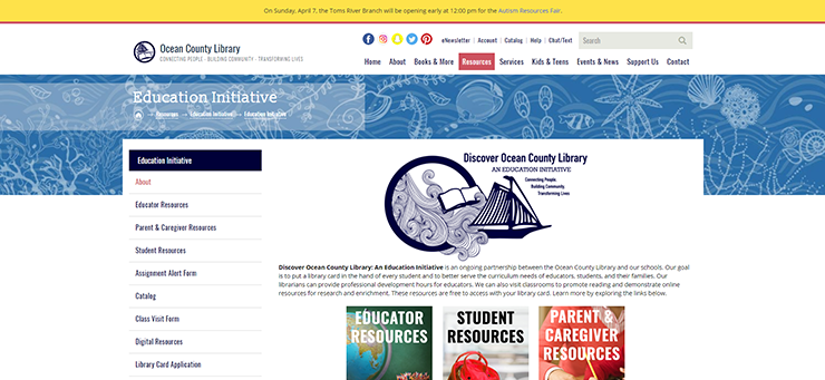 Winner of America’s Star Libraries in 2011 and special mention in Library Journal’s Library of the year 2013, OCEAN COUNTY LIBRARY was facing difficulties in maintaining their website. Being the oldest community in America, OCL has been transforming lives through the power of information, stories, and knowledge over the last 89 years. With 21 branches conveying specific information in different locations, each branch wanted to feature its own front page to serve a larger local audience. Since it helps all kind of audiences, it needed a layout that could appeal to everyone. Therefore, OCL needed a responsive and flexible design that could support the content migration of 20 different categories present on the website. In short, they needed a new site with a modern design and improved functionalities. In search of affordable website service providers, OCL came to Zrix.